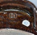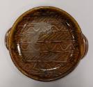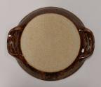 About MeThis stoneware press-moulded pie dish has two applied ribbed loop handles. It is glazed all over with an ash glaze then reddish-brown tenmoku and a final firing of golden yellow-brown spruce ash glaze which has been 'finger wiped' to create a banded pattern of tenmoku waves, dots and lines.