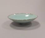 About MePorcelain flared open bowl standing on a shallow footring. The bowl is glazed all over in a greeny-blue celadon glaze which pools towards the centre of the interior, creating a deeper shade. The bowl's rim is edged with a light greeny-brown tenmoku glaze.Chris Keenan frequently works with a combination of celadon and tenmoku glazes, with tenmoku applied to create a subtle pattern or, as in this case, to enhance the shape.