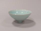 About MePorcelain round bowl standing on a narrow cylindrical foot. It is glazed all over in pale greenish-blue celadon glaze fading to almost white at the rim which is edged with a very fine band of pale greenish-brown tenmoku.This bowl is a good example of Chris Keenan's elegant style with a subtle surface pattern.