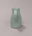 About MePorcelain jug with tapering body and short neck and lip. Simple strap handle with thumb piece. There are distinct potting rings inside the jug and a smooth exterior.It is glazed all over in a pale blue celadon glaze, pooling to the foot of the jug and becoming almost pearl white in colour around rim and handle edges.