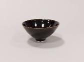 Porcelain Small Footed Bowl with Tenmoku Glaze