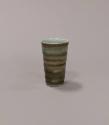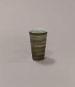 About MeThis porcelain small beaker is glazed all over in blueish-green celadon and decorated on the outside with bands of brushed muted shades of olive green and greeny-brown.Celadon is a type of glaze which originated in China. It is frequently found in shades of pale green, however colours can range from pale pearl blue to dark olive green depending on the quantity of iron oxide added to the glaze before it is fired.