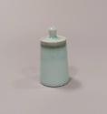 About MePorcelain small lidded jar and cover which are both glazed in a pale blue-green celadon with a band of grey-green tenmoku around the outer rim edge of the jar.Chris Keenan frequently works with celadon and tenmoku glazes in combination to create contrasting colours, surface patterns or to enhance the shape of the piece.