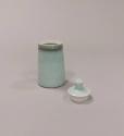 About MePorcelain small lidded jar and cover which are both glazed in a pale blue-green celadon with a band of grey-green tenmoku around the outer rim edge of the jar.Chris Keenan frequently works with celadon and tenmoku glazes in combination to create contrasting colours, surface patterns or to enhance the shape of the piece.