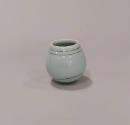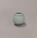 About MeThis porcelain small rocking bowl has a rounded base and almost circular form rising to a slightly oval plain rim.It is glazed in a blueish-green celadon and decorated with thin horizontal bands of olive green tenmoku formed as two lines swirling around the base and two parallel lines around the neck .