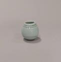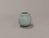 About MeThis porcelain small rocking bowl has a rounded base and almost circular form rising to a slightly oval plain rim.It is glazed in a blueish-green celadon and decorated with thin horizontal bands of olive green tenmoku formed as two lines swirling around the base and two parallel lines around the neck .