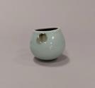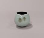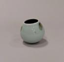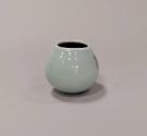 About MeSmall porcelain rocking bowl with rounded base and ovoid form rising to a slightly oval plain, unglazed, rim.The outside is glazed in a blueish-green celadon with splashes of olive green tenmoku probably applied by the potter's thumbs. The inside is glazed in a very dark, almost black, tenmoku glaze.
