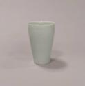 The entire beaker is covered in a pale greenish-blue celadon glaze. Celadon is a type of glaze which originated in China and spread to other parts of East Asia. Iron oxide is added to create shades of pale green and blue and with the addition of a greater amount of iron oxide, in shades of olive green and black.