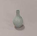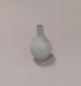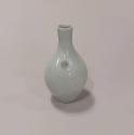 About MeThis small porcelain vase has an ovoid body and slim cylindrical neck. It is glazed all over with a grey-blue celadon glaze and a single splash of tenmoku, possibly applied by the potter's thumb, on the body.
