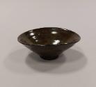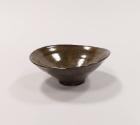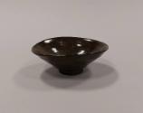 About MeThis earthenware open bowl has distinct potting rings and a fluid shape with an undulating rim. It is glazed all over in a dark brown slip with oxides creating a golden yellow cast to the glaze.