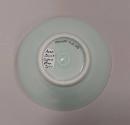 About MePorcelain small flared bowl which is glazed all over in a pale blue celadon glaze. The outside is plain, whilst the inside is decorated with a broad band of lightly incised stylised leaf pattern beneath the celadon glaze.