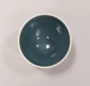The glaze has been wiped clean along the rim, exposing the white porcelain below, creating a decorative highlight and emphasising the shape of the bowl.