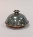 About MeSaltglazed stoneware circular butter dish and domed cover. Both the dish and cover are glazed in a blue-grey saltglaze with its characteristic mottled appearance. Before the glazing lines have been scratched on the cover to add decoration and divide it into 4 segments.