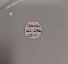 About MePorcelain straight-sided circular dish which is glazed all over in a pale greeny-blue celadon with a double trail of tenmoku iron glaze in a random squiggle pattern.Celadon is a type of glaze which originated in China. It is frequently found in shades of pale green, however colours can range from pale pearl blue to dark olive green depending on the quantity of iron oxide added to the glaze before it is fired.Tenmoku is a Japanese term for another type of glaze originating in East Asia. It is usually a dark lustrous colour or, as in this example, a shade of brown.