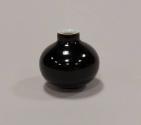 About MePorcelain small squat globular vase with short neck. It is glazed all over in a dark brown, almost black, tenmoku glaze with a thin reddish-brown line around the rim. In this example Chris Keenan has chose to glaze the inside in a pale blue celadon glaze to create starkly contrasting colours. Tenmoku is a Japanese term for a type of glaze which is usually a lustrous black, or as in this example, a dark treacle-brown. Celadon is another type of glaze originating in the Far East. It is frequently found in shades of pale green, however colours can range from pale pearl blue to dark olive green depending on the quantity of iron oxide added to the glaze before it is fired.