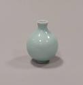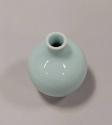 About MeA small porcelain globe vase with short concave neck. It is glazed all over in a pale blue, almost turquoise, celadon glaze which is darker towards the foot, becoming almost white at the rim.Celadon is a type of glaze originating China. It is frequently found in shades of pale green, however colours can range from pale pearl blue to dark olive green depending on the quantity of iron oxide added to the glaze before it is fired.