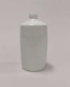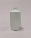 About MeA Limoges porcelain softly squeezed bottle of cylindrical form with prominent shoulder rising to a narrow and straight neck with irregular rim.