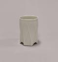 About MeThis porcelain beaker was wheel-thrown and then cut by hand to create facetted sides which are textured with fine lines achieved by using a toothed blade or thin cutting wire. The potter has also cut away channels at the base to form the 4 feet on which the beaker stands.It is glazed all over in a very pale green celadon glaze, becoming almost white at the rim, feet and over the facetted edges, highlighting these and giving the beaker a textured appearance.