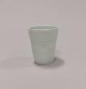 About MeLimoges porcelain beaker with a very slightly flared body rising to a fine rim. Two prominent ribs around the beaker add decoration and the placing of the maker's impressed seal half way up the body acts both as a thumb rest and additional decorative motif.