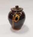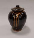 Earthenware Covered Store Jar with Dark Brown Glaze
