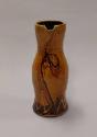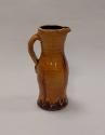 About MeThis slip-glazed tall jug with its long neck and rounded belly flaring to the foot is one of Clive Bowen's 'Medieval-style' jugs. It features a rolled rim with simple lip and a strap handle with prominent join to the body where the potter's thumb has applied pressure to the clay.