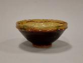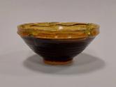Wavy Rim Flared Bowl with Brown and Yellow Glazes