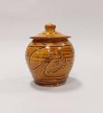 Earthenware Covered Store Jar with Yellow and Brown Glazes