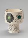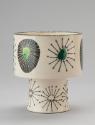 About MeCeri White makes ceramics that are intended to be joyful, inspired by memories, feelings, textures and even smells relating to the home décor and domestic objects in her 1970s childhood home.She is also inspired by nature and the freehand designs on this pot are influenced by her fascination with microscopic cell biology.