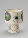About MeCeri White makes ceramics that are intended to be joyful, inspired by memories, feelings, textures and even smells relating to the home décor and domestic objects in her 1970s childhood home.She is also inspired by nature and the freehand designs on this pot are influenced by her fascination with microscopic cell biology.