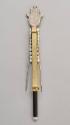 Mediumbrass, silver, steel, re-purposed enamel and steel, wood, cultured freshwater pearl