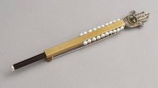Mediumbrass, silver, steel, re-purposed enamel and steel, wood, cultured freshwater pearl