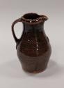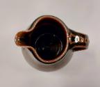 About MeThis stoneware jug has a bulbous body tapering to the neck. It is decorated with rich black tenmoku glaze thinning to reveal the iron glaze beneath. There is a pressed mark halfway down the body under the spout. There is also a vertical line of incised marks down the exterior of the handle.