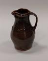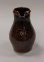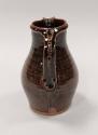 About MeThis stoneware jug has a bulbous body tapering to the neck. It is decorated with rich black tenmoku glaze thinning to reveal the iron glaze beneath. There is a pressed mark halfway down the body under the spout. There is also a vertical line of incised marks down the exterior of the handle.