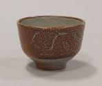 About MeThis small stoneware bowl is glazed in an oatmeal slip under a dark tan glaze and has been salt-glazed to achieve a speckled appearance. It is decorated around the outside with a meandering pattern of lines and whorls.