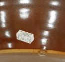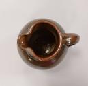 The jug is fully glazed in a light white slip (liquid clay) under a black gloss glaze (probably Winchcombe's AK glaze) with iron brown glaze creating a mottled effect.