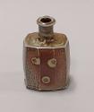 Salt Glaze Faceted Press Moulded Bottle with Iron Ash Glaze And Shell Marks