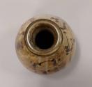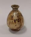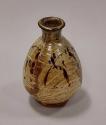 About MeThis bulbous bottle vase has a short neck with a thickly potted rim. It is decorated with brown glaze with iron painted stemleaf motifs over thickly brushed white hakeme slip.