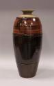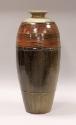 About MeA very large stoneware bottle vase of ovoid form with a waisted neck and everted rim. It is glazed all over in a pale green ash glaze under a reddish-brown iron glaze and dark tenmoku glaze.