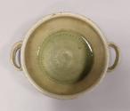 Decorated with an incised band and ring of incised notches (termed 'chatter' marks by Richard Batterham) around the inside base, where the celadon has pooled emphasising the pattern.