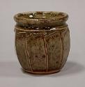 Stoneware Small Cut-Sided Jar with Mottled Green Ash Glaze