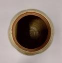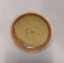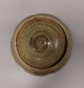 Both the jar and cover are glazed in a pale green ash glaze with brown speckles and green celadon. The glazing finishes before the foot of the jar and the base is unglazed.