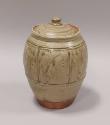 Large Stoneware Lidded Jar with Green Ash Glaze
