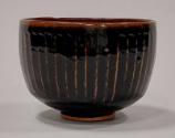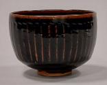 About MeThis stoneware fluted bowl is glazed all over in a rich dark, almost black, tenmoku glaze with copper flecks. The glaze thins to iron red beneath the rim and on the fluting around the body.