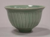 About MePorcelain fluted bowl with an everted rim and narrow foot.The bowl is fully glazed in a pale green celadon glaze which thins over the rim and fluting to emphasise the shape.