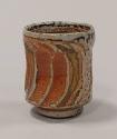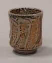About MeStoneware small beaker known as a 'guinomi', or sake cup, with facetted body and sodium vapour glaze.