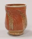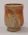About MeStoneware beaker known as a 'guinomi', or sake cup, with facetted body, short concave neck, rolled rim and short rounded foot ring.
