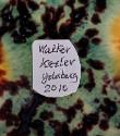 Although Walter Keeler is perhaps best known for his salt-glazed wares, in the 1990s he also explored early earthenware glazes such as Whieldon, made in Staffordshire during the 18th century. These glazes are splashed and spotted with bright colours creating a tortoiseshell effect which Keeler applied to a range of witty and inventive shapes. Keeler designs his pots to be used and describes them as "extraordinary objects doing a commonplace job".