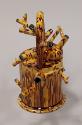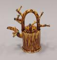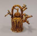 The handle and spout are decorated with hollow cut branches with thorns. The use of branch or ‘crabstock’ details in