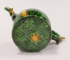 Although Walter Keeler is perhaps best known for his salt-glazed wares, in the 1990s he also explored early earthenware glazes such as Whieldon, made in Staffordshire during the 18th century. These glazes are splashed and spotted with bright colours creating a tortoiseshell effect which Keeler applied to a range of inventive shapes. Keeler designs his pots to be used and describes them as "extraordinary objects doing a commonplace job".