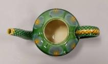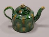 Earthenware Canister Teapot With Whieldon Style Glaze And Scale Pattern